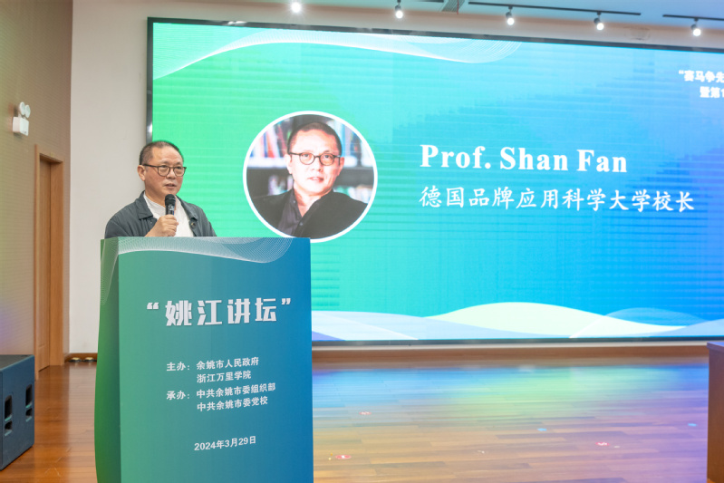Shan Fan介绍了德国品牌应用科学大学办学特色、“品牌科学”学科、交互大学发展理念,并表达了德国品牌应用科学大学希望和太阳成集团tyc33455ccwww共同参与余姚发展的意愿。
