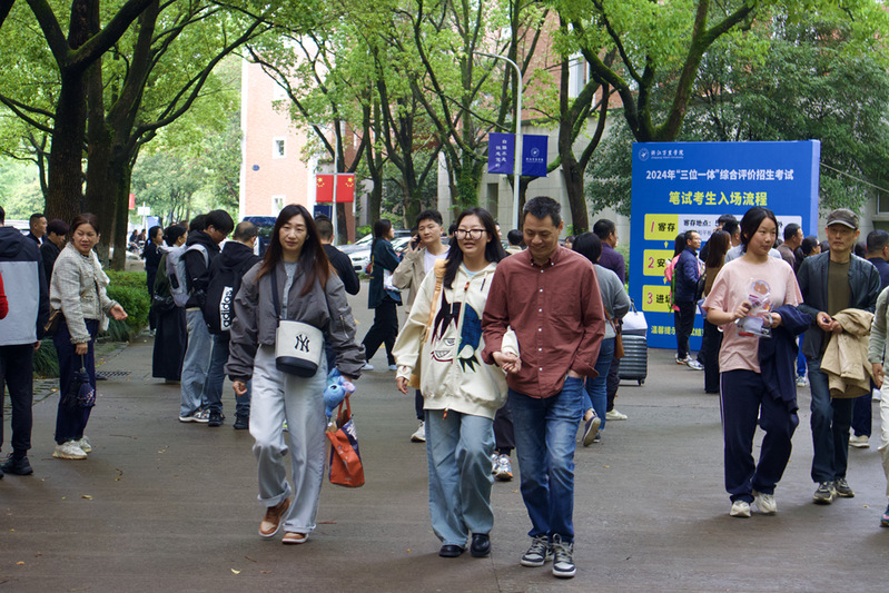 来自温州市第二外国语学校的吴雅轩和诸葛祥瑞是高中同寝的室友。她们结伴考试,在万里再度相遇,“我们是到了宁波才发现对方也在,希望我们都能顺利入学万里,再续前缘!”。“万里的校园环境和基础设施建设都很不错,今天体验下来,我感觉学校的人文关怀也相当到位!下午还计划逛逛学校,感受一下大学校园氛围。”考生许心琳笑着说。李先生是万里的员工,他的女儿李欣怡报考了中德品牌学部的广告学专业。阔别校园数十载,回想着记忆里的母校,第一次来到钱湖校区的他颇有感慨:“我很欣喜,孩子和我当年做了同样的选择。回到母校,我非常激动!”