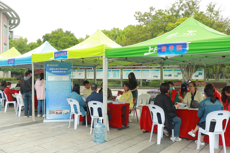 集团还设置了家长等候区,在素质拓展中心内开展专业宣讲,向家长推介学校优势学科和特色专业。在素质拓展中心外广场上,各学院布置展出宣传展板、设置招生咨询台,老师们热情、耐心地接受咨询。