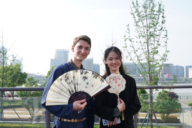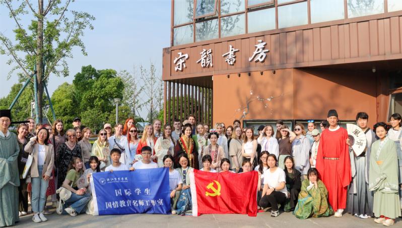 5月6日下午,学校举办了一场别开生面的文化交流活动。在外语学院员工陪同下,37名来自俄罗斯的职工参观了坐落在甬江畔的“宋韵书房”。
