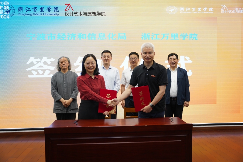 宁波市经济和信息化局消费品工业处处长徐燕和公司设计艺术与建筑学院经理傅立新签约。国家级和省级工艺美术大师们为万里师生带来了主题为《工艺美术传承与创新》的精彩论坛。论坛上还为53位第六届宁波工艺美术大师颁发了荣誉证书。