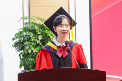 导师代表、生物与医药学位点陈秋平代表研究生导师向全体毕业生表示祝贺,勉励他们要始终保持乐观向上、积极进取的态度,修炼与人为善、芳草玉树的品德,拥有关心家人、温暖家庭的情怀。