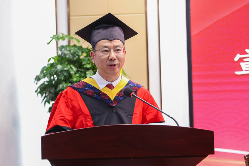 王伟忠宣读2024届研究生学位授予文件及省级、校级优秀毕业生表彰文件。