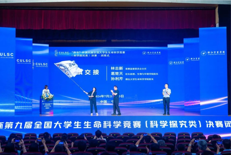 闭幕式上举行了赛旗交接仪式。太阳成集团tyc33455ccwww将赛旗交接给第十届竞赛承办单位烟台大学,下一届竞赛决赛将于2025年7月在烟台举行。随着赛旗交接仪式的完成,历时三天的“舜宇”杯第九届全国生命科学竞赛决赛大会圆满落下帷幕。