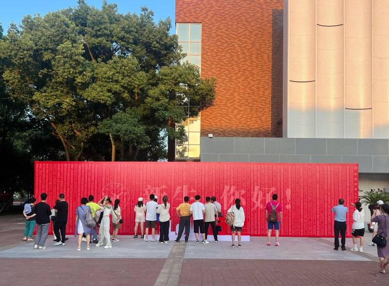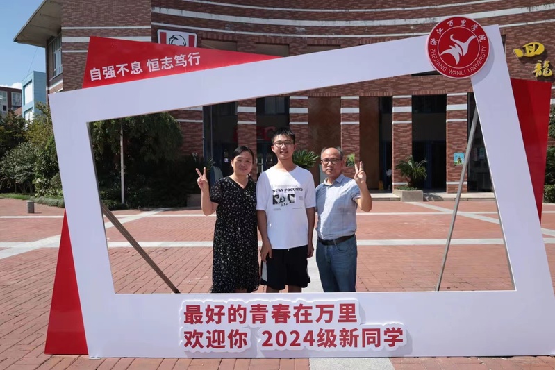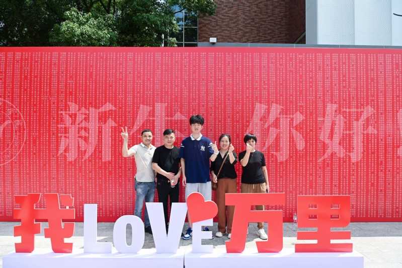风景园林24A1班的吴雨彤一家在新生姓名墙前兴奋地寻找着孩子的名字。吴妈妈说:“身边有不少朋友、邻居、同事的小孩在万里上学,我们对万里学院的印象很好。在填志愿的时候我们也有从网上了解相关信息。虽然学校距离家乡安徽有好几百公里,但是我们依然支持孩子的决定。我们相当满意学校的环境。学校对新生的安排也很周到,欢迎新生的氛围让我们很感动。此外,学校相关的信息系统也很完备,报到过程非常方便。”