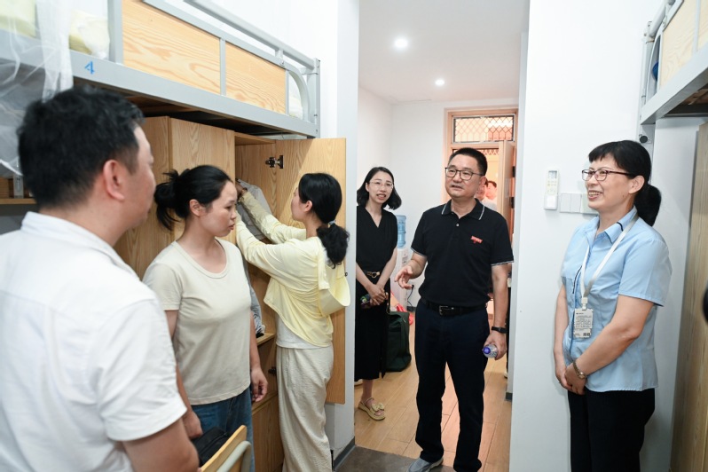 董事长林志华,党委书记王伟忠,党委副书记、副董事长马建荣,副董事长陈建革,党委副书记朱邦相等校领导深入新生报到现场,详细了解新生报到流程和报到情况,诚挚慰问迎新现场工作人员与志愿者,并前往员工宿舍看望新生和家长代表,送上学校的关心与祝福。