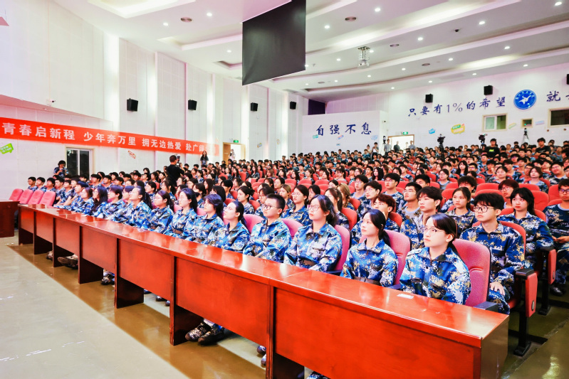 典礼开始前,师生共同观看了学校宣传片和暖场视频《万里征途》,了解学校发展历程和办学成效,回顾了报到半个月来的校园生活。