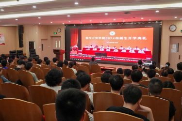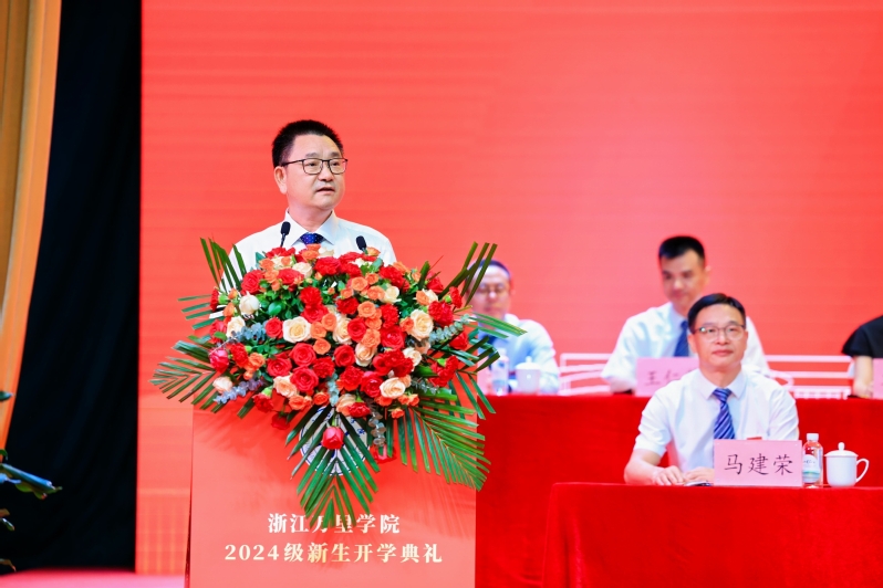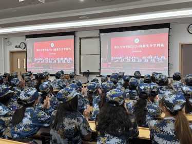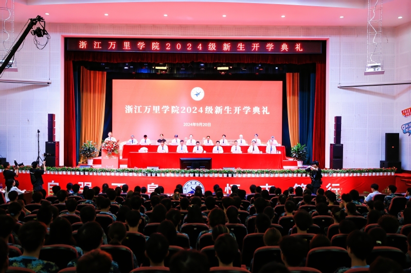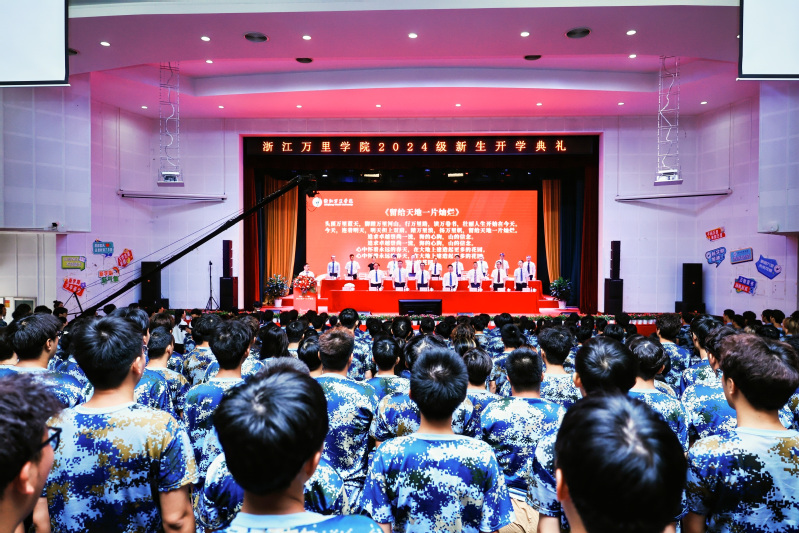 董事长林志华,党委书记王伟忠,纪委书记孙斌,副董事长陈建革、杨震峰,党委副书记朱邦相,董事长助理葛楚天,各学院经理及500名新生代表在回龙校区素拓中心主会场参加典礼,其他新生分别在钱湖校区、回龙校区分会场参加典礼,广大员工、家长通过视频直播观看典礼。开学典礼由副董事长、党委副书记马建荣主持。