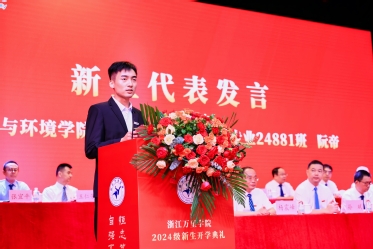本科新生代表商学院财务管理专业的张城玮、研究新生代表生物与医药专业的阮帝分别讲述了自己对于老员工活的憧憬和思考,共同表示“自强不息、恒志笃行”的校训是每一个万里学子用行动证明自己的宣言,作为新时代的万里人,将胸怀祖国、放眼世界,把个人奋斗融入民族复兴的时代洪流,以更加饱满的状态,让青春在与祖国共进中焕发出耀眼的光芒。