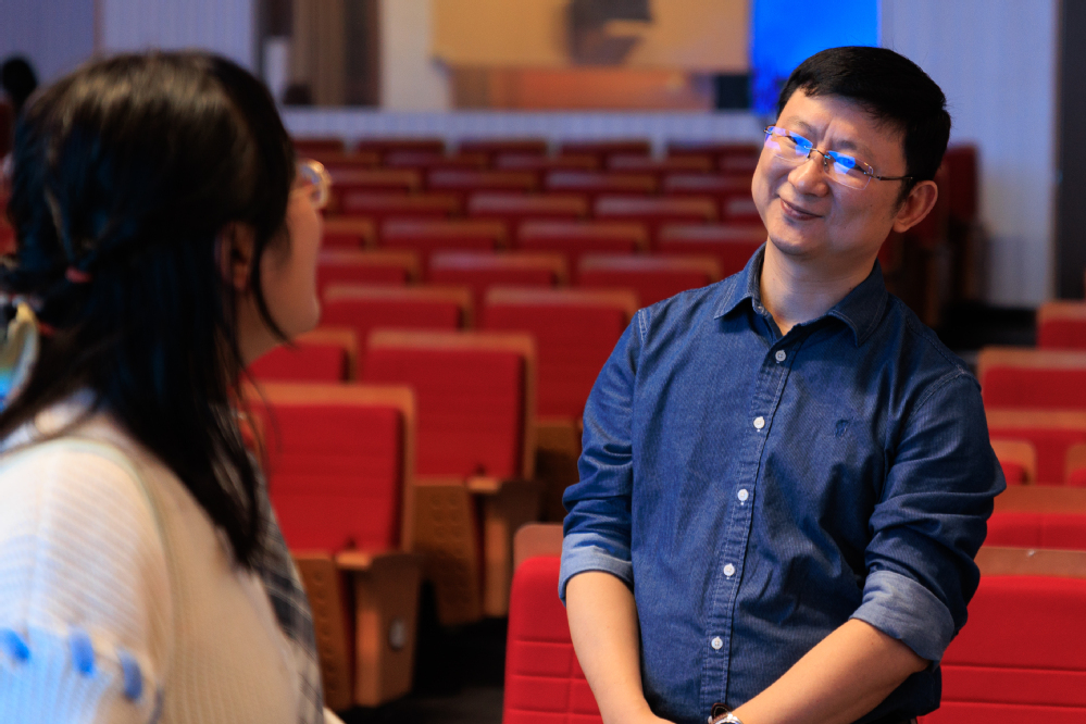 会后,发生了感人至深的一幕。一名来自湖北十堰的文化与传播学院的新生找到周强医生,深深一鞠躬,为因疫情而滞留武汉的家人表达了自己由衷的感谢。那时会场的灯光暗了下来,英雄城市的青年与一位英雄医生,纵素不相识,却守望相助。