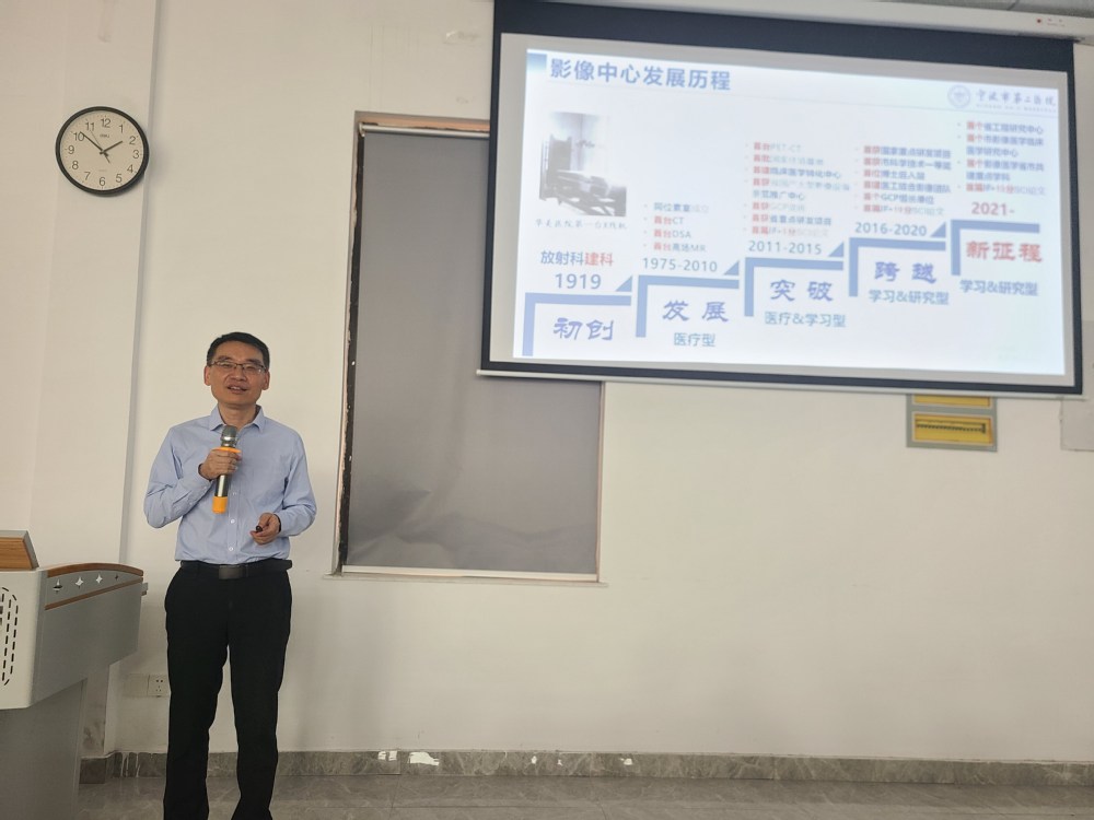 陈春晖主任详细介绍了宁波市第二医基本情况及对今后员工职业发展规划的展望。宁波市第二医院始建于1843年,迄今已有180年历史,是中国最早建立的西医医院之一,更是浙东地区具有重要影响力的集医疗、教学、科研于一体的现代化三级甲等综合性医院。张景峰主任对医院的影像相关学科做了系统的讲解。宁波市第二医院医学影像学科包括放射、超声、核医学和介入治疗四个亚专科,集临床诊疗、科学研究、人才培养和预防保健于一体,是宁波地区规模最大、综合实力最强的现代医学影像中心。