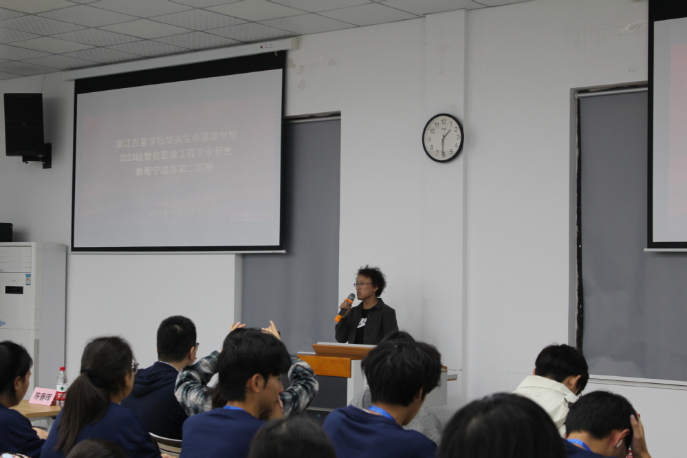 活动伊始,师生来到宁波市第二医院临床技能培训中心,参加研学活动的见面会。宁波市临床教学中心副主任陈春晖主持见面会,二院放射科主任张景峰、科教部主任胡素佩、科教部副主任李立成、宁波市临床教学中心张安星医生和王爽医生出席见面会。