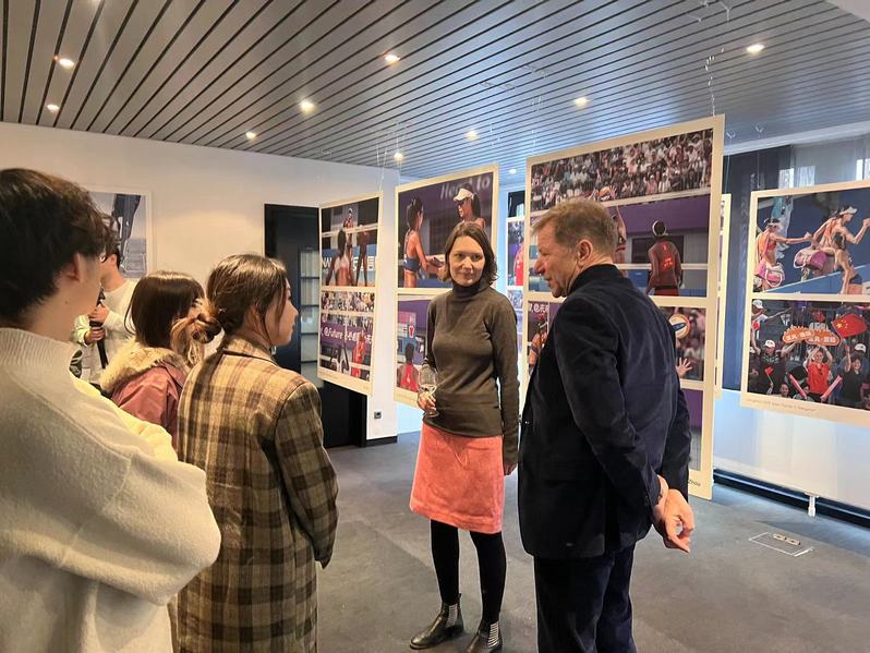 在展览现场,中外友人们齐聚一堂,开展了有关亚运象山的研讨。前来观展的德国品牌应用科学大学教授Hans表示:“从不同角度捕捉到的活动瞬间中,我能感受到海洋的绚丽多彩,以及运动员们在海上的飒爽英姿。她们勇敢拼搏的身影,给我留下了很深的印象。我没去过中国,也没到过象山,但是当我看到这些美丽的海域,极具张力的运动,让我也想有一天去中国象山见一见现场,感受一下青年的勇气。我很喜欢这次的展览,对于我来说是一次全新的体验。”