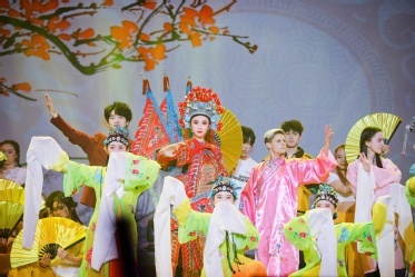 在百花齐放的文艺表演环节,演员们通过歌曲、舞蹈、器乐、朗诵、艺术体操以及戏曲等多种形式为观众带来精彩演绎。管弦丝竹,浩浩汤汤,商学院和校器乐团合奏的《鲲鹏万里》将音符汇成江河,为晚会奠定了宏大华美的基调;员工代表们宛若天籁的合唱《在希望的田野上》,让观众恍若置身金色的层层麦浪,唱出了对未来的殷殷向往和孜孜追求。