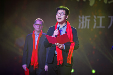 精彩绝伦的开场视频回顾了公司过去三年在综合实力、党建引领、团队队伍、人才培养、团队建设及社会服务等多方面所取得的卓越成就。学校领导、教师代表、员工代表以视频的方式为万里师生送上真挚的新年祝福。获得2023年国家杰出青年科学基金项目资助的葛楚天、荣获中国国际老员工创新大赛(2023)全国金奖的项目负责人叶成龙和指导教师陈彩祥、中德联合学院副经理Stefan Waller共同为师生献上新年贺词。