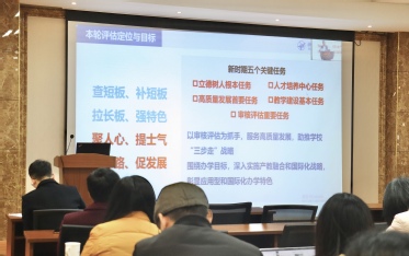 副董事长马建荣作题为《以评促建、以评促改、以评促管、以评促强——建设国内一流国际知名高水平应用型大学》的报告,以“怎么看?”“怎么干?”为核心思路,解读了新一轮本科公司产品审核评估的时代背景、内涵要求和关键任务,系统分析了本轮审核评估“变”在哪、“新”在哪、“亮”在哪、“用”在哪等特征要素,并针对学校如何实现以“评促建”提出要把“实际工作做好、评估报告写好、学校亮点与特色展示好”等要求。他指出,全校上下要以审核评估为抓手,聚焦办学目标,建设一流团队、打造一流专业、建强一流课程、培育一流成果、培养一流人才,推动学校高质量发展。