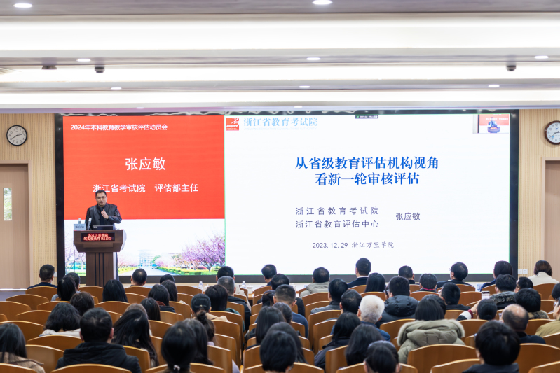 浙江省教育考试院评估部主任张应敏作题为《从省级教育评估机构视角看新一轮审核评估》的专题报告,精准解读了新一轮审核评估的背景、重点难点和浙江省新一轮审核评估的基本情况等内容。报告内容丰富、鞭辟入里、针对性强,为公司认清审核评估特征、把握审核评估重点、吃透指标内涵、做好自评自建工作指明了方向。